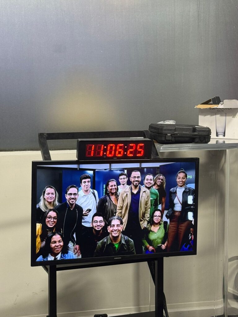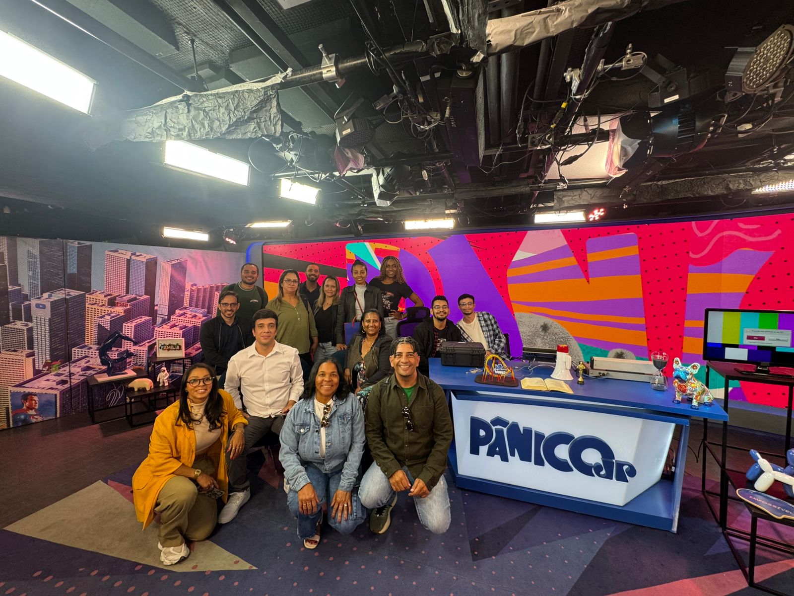 No SBT, a visita foi conduzida por Jefferson Lopes (Auditório e Inscrições) e Adão Jesus (Central de Comunicação). O grupo conheceu o icônico banco da “A Praça é Nossa”, o Museu do SBT, o departamento de jornalismo e a fábrica de cenários.